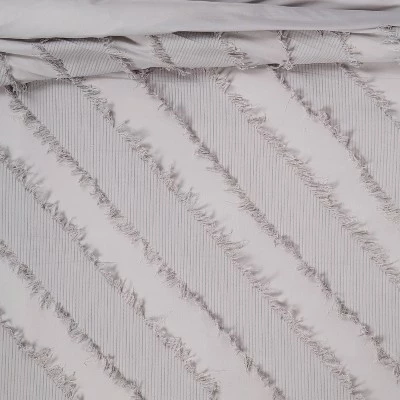 Bring an effortless touch of understated luxury to your bedroom decor with this Diagonal Textured Duvet & Sham Set from Opalhouse™. Made from a soft and breathable fabric with sturdy backing, this bedding set is sure to keep you comfy in bed. This set includes one duvet cover and one sham for the Twin/Twin Extra Long size, or two shams for the Full/Queen and King sizes. Each features diagonal textured detailing with fringe accents to give your bedscape a lush look and feel. The button closure and corner ties help the duvet cover stay in place, while the envelope closure on the sham makes it easy to cover your pillows. Simply add coordinating sheets and decorative pillows to bring your bedroom to life.