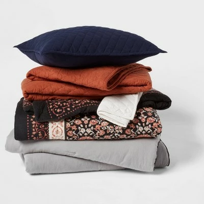 Imbue a warm, cozy feel into your bedroom with the Flannel Bedding Collection from Threshold™. This collection of bedding linens includes soft flannel quilts, quilted shams, and sets of matching comforters and shams to dress up your sleep space. Each piece in this bedding collection is made from a midweight cotton fabric with a fuzzy flannel construction for plenty of comfort and warmth. You can choose from a wide range of solid colors or printed sets for a quick refresh to your restful retreat, or you can mix and match the pieces to create a personalized bedscape that speaks to you. Plus, all the pieces are machine washable for added convenience.