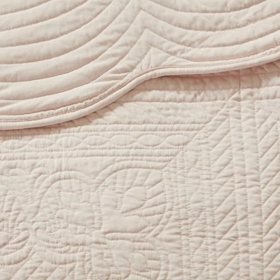 - β’ Cottage/country style quilted reversible coverlet set in scallop edge