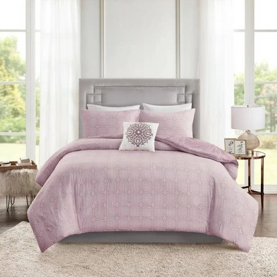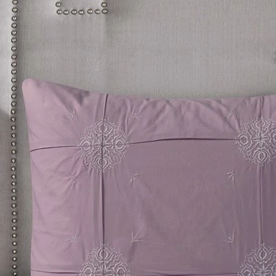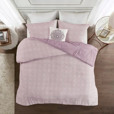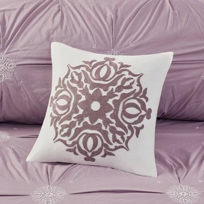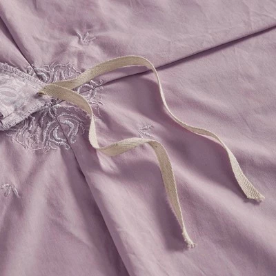 Style your bedroom with the shabby chic allure of the Alicia Embroidered Cotton Reversible Duvet Cover Set. The face of the reversible duvet cover features tufted embroidery on a soft base, while the reverse showcases an all-over medallion print that complements the top of the bed. Two matching shams mirror the face of the cotton duvet cover and an embroidered medallion design on the square decorative pillow provides an elegant finishing touch. A button closure secures a padded insert within the duvet cover and inside corner ties prevent it from shifting (insert is NOT included).