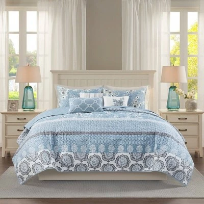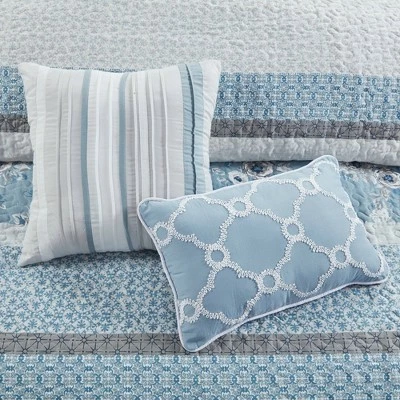 Give your bedroom a cozy country vibe with the Loraine 6 Piece Coverlet Set. This cotton sateen coverlet and 2 matching shams feature various floral and geometric prints to create an updated cottage look. A solid reverse complements the top of the coverlet and provides an additional way to style your bedroom. Also included are 3 decorative pillows with embroidered details that add textural elements to this quilted coverlet set. Machine washable for easy care, this reversible cotton coverlet set brings a country charm to your bedroom.