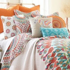 - COORDINATE YOUR ROOM DECOR: Create a wonderful bedroom space with our coordinated reversible matching bed set. The orange, teal, pink and green design brings a fun, bohemian feel into your home and will match a variety of different looks and bedroom decor. You can also freshen your room with other items from the Levtex Home collection.