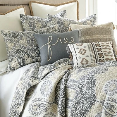 The Trevino Reversible Twin Quilt Set by Levtex Home is inspired by architecture. This intricate paisley design will immediately transform your bedroom. Made with the softest lightweight cotton, this reversible quilt features a tan, grey, black, and white paisley, reversing to a the same pattern on the other. The Twin Quilt Set is machine washable and includes the quilt (68x86in.) and one standard pillow sham (26x20in.) Enjoy this for years to come!