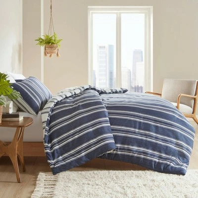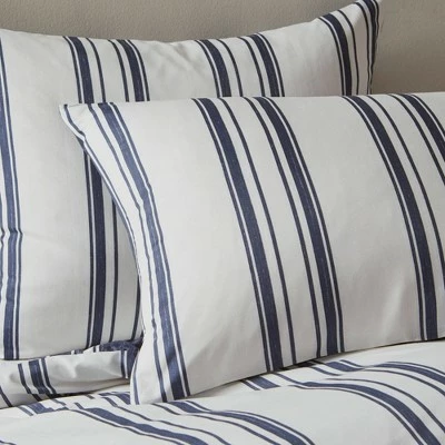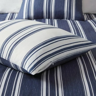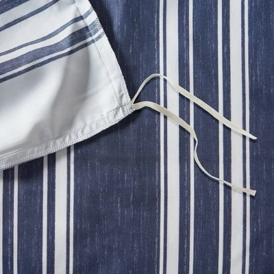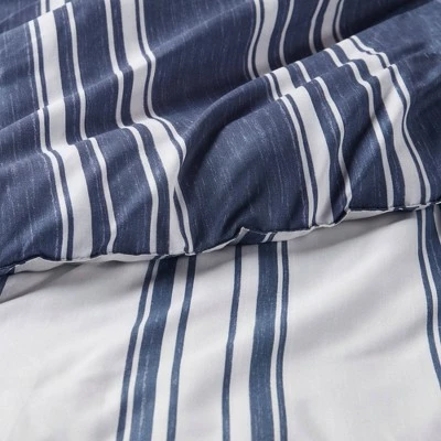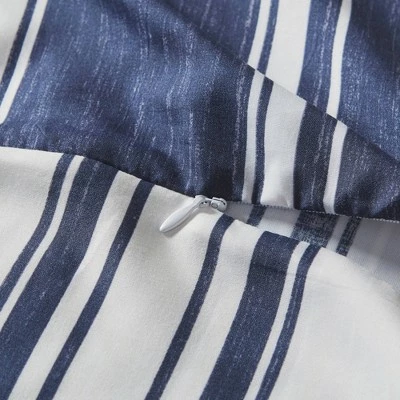 Create a casual farmhouse look in your bedroom with the Clean Spaces Avery Striped Reversible Duvet Cover Set. This reversible duvet cover and shams feature a striped print that flips the color scheme on the reverse to create two chic country styles. A stain release protection treatment helps to remove most stains during the wash cycle, while an antimicrobial treatment provides built-in freshness protection, reducing the growth of odor causing bacteria to keep fabric lasting longer. Machine washable for easy care, this striped bedding set offers a clean and cozy addition to your bedroom. A zipper closure at the foot end allows you to place a padded insert within the duvet cover and internal corner ties prevent it from shifting (Insert is NOT included).