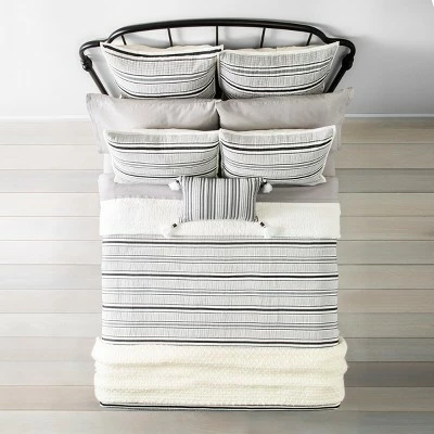 Rest in style and comfort with the Textured Stripe Quilt and Sham Collection from Hearth & Hand™ with Magnolia. Showcasing striped patterns for a breezy, casual look, the striped quilt and sham are crafted from 100% dobby-weave cotton for comfort and breathability, while the linen-blend sheet set includes a fitted sheet, flat sheet and pillowcase(s) for sumptuous comfort.