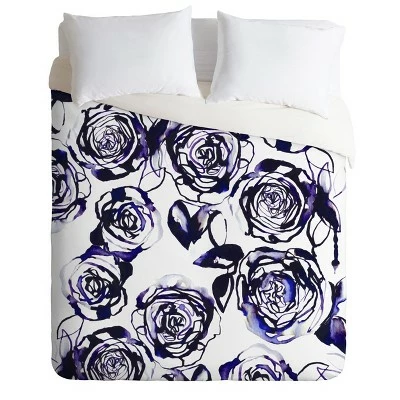 Turn your basic, boring down comforter into the super stylish focal point of your bedroom with the Deny Designs Holly Sharpe Inky Roses duvet set. Our lightweight duvet is made from an ultra soft lightweight woven polyester fabric with an art printed top side. Our duvet cover includes a hidden zipper with interior corner ties to secure your comforter. It’s comfy, fade resistant, machine washable and custom printed for every order. The King and Queen come with a duvet cover and two pillow shams, the Twin comes with a duvet cover and one pillow sham.