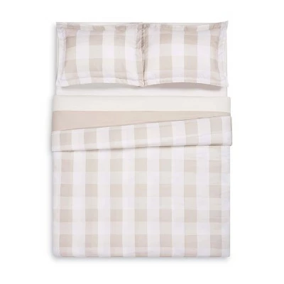 This large buffalo check print features a white background and gray intersecting pattern on the face of the duvet. The reverse is a solid color gray. The duvet and shams feature a brushed 100% microfiber polyester Truly Soft fabric with special finishes to make this the ultimate in softness. Each duvet set comes with a duvet cover (insert is not included and needs to be purchased separately. Shams require inserts that must be purchased separately. This item can be machine washed but please be sure to use properly sized machinery to care for the item. Duvet face and back are made from 100% microfiber polyester fabric. These items are all machine washable; however, care should be taken to use appropriate sized equipment.
