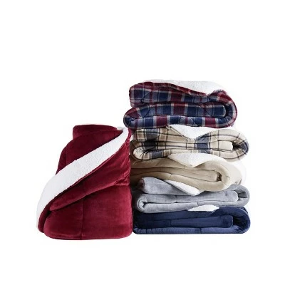 Printed plaid patterns on a velvet face cloth reverses to a luxurious sherpa plush fabric in designer soldi colors. The fabric provides the ultimae in softness and is great for cold nights. The polyester velvet face cloth is durabel and able to handle high traffic areas. Face is 100% polyester mink reverse to sherpa with 100% polyester fill. This item is machine washable, but please be sure to use appropriate sized machinery to avoid any excess wear on the items.