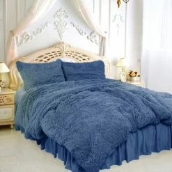 Deals π 4 Pcs Plush Shaggy Duvet Cover Set with Bedskirt & Pillowcases – PiccoCasa π