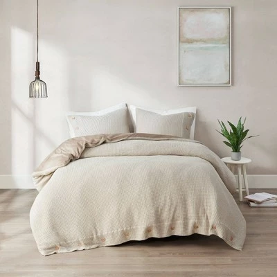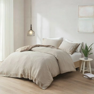 - Soft yarn dyed cotton Rayon from Bamboo blend waffle weave duvet cover set