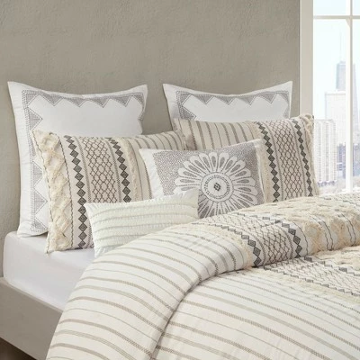 Bring a soft, mid-century look to you bedroom with the INK+IVY Imani Cotton Duvet Cover Mini Set. The cotton duvet cover features geometric prints with tufted chenille that adds dimension and charm, while the solid reverse complements the eye-catching patterns seen on top of the bed. A button closure and four inside corner ties allow you to place and secure a comforter insert within the duvet cover, for warmth and comfort. Two cotton shams reiterate the designs of the duvet cover, creating a stunning coordinated look. Made from 100% cotton, this duvet cover mini set is machine washable and offers a refreshingly soft update to your bedroom decor. This bedding set is also OEKO-TEX certified, meaning it does not contain any harmful substances or chemicals, ensuring quality comfort and wellness.