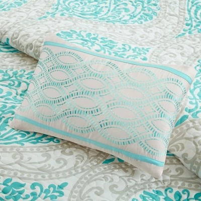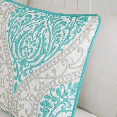 Make a statement in your bedroom with Chelsea Reversible Coverlet Set. Flaunting a large damask print, this beautiful coverlet creates a striking contrast with a vivid splash of color, and reverses to a solid, coordinating color. The matching shams (1 for Twin/TwinXL sizes) echoes the elegant pattern seen on top of the bed, while a solid flange provides a finished touch. Machine washable for easy care, this chic coverlet set is made from ultra-soft microfiber for long-lasting comfort and style. Coordinating decorative pillows feature intricately embroidered details to complete this captivating look. This bedding set is also OEKO-TEX certified, meaning it does not contain any harmful substances or chemicals to ensure quality comfort and wellness.