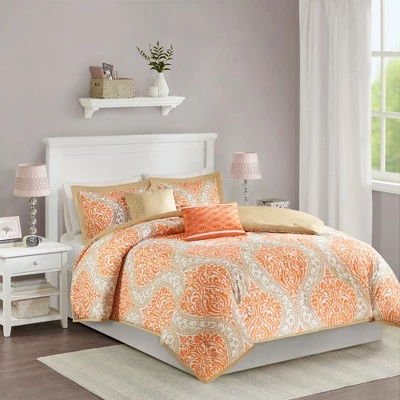 Make a statement in your bedroom with Chelsea’s Comforter Set. Flaunting a large damask print, this beautiful comforter creates a striking contrast with a vivid splash of color! The matching shams (1 for Twin/TwinXL sizes) echoes the elegant pattern seen on top of the bed, while a solid flange provides a finished touch. Machine washable for easy care, this chic comforter set is made from ultra-soft microfiber for long-lasting comfort and style. Coordinating decorative pillows feature intricately embroidered details to complete this captivating look. This bedding set is also OEKO-TEX certified, meaning it does not contain any harmful substances or chemicals to ensure quality comfort and wellness.