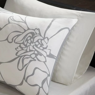 The Jane 6 Piece Duvet Cover Set is the perfect update to bring beauty and grace to your bedroom. An over-scaled printed floral motif adds a soft accent to the cotton sateen duvet cover. The solid reverse provides rich touch of color to complement the top of the bed. Button closures allow you to place a comforter insert within the duvet cover and the internal corner ties prevent it from shifting. Coordinating shams with a floral motif pair beautifully with the duvet cover, while three decorative pillows with embroidered details and fabric manipulation complete the ensemble. Machine washable, this cotton sateen duvet cover refreshes your space with its casual elegance and charming allure.