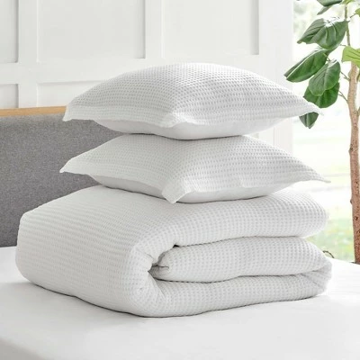 - EASY CARE: The Mills Waffle Bright White Duvet Cover Set is easy to look after. Simply machine wash on a cold, gentle cycle, then line dry or tumble dry at low temperature.
