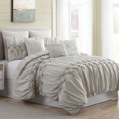 Indulge yourself in spa-like luxury with this 8-Piece Embellished Comforter Set. The polyester filling gives just the right fluffiness to this comforter set while the bar tacking details give a more formal finished look. Our luxuriously silky brushed microfiber material is constructed using techniques that include better stitching, stronger weaving, and softer materials; Ensuring a durable and soft touch. Fashion meets luxury with this set and is the perfect solution to your decorative and comfort needs.
