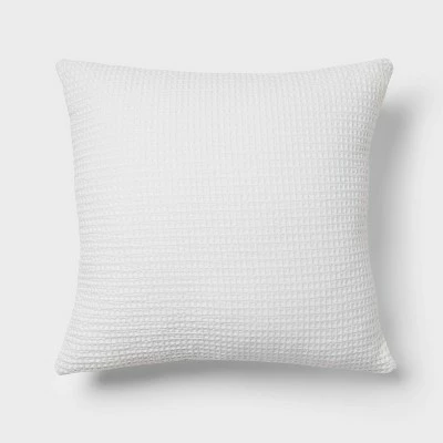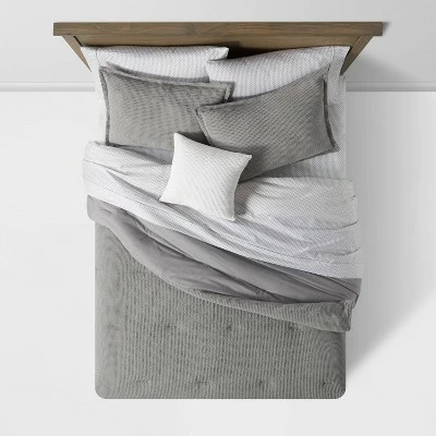 Add some refined texture to your bedroom with the Waffle-Weave Comforter & Sheet Bundle from Threshold™. Made from midweight 100% cotton, this multi-piece bedding set includes everything you need to transform your bedroom into a cozy haven that provides year-round comfort. The comforter is adorned with a waffle-weave pattern that brings textural style and comfort to your space. The matching solid backside adds elegant style, and the two matching waffle shams, two contrasting pillowcases, and a textured decorative pillow complete the graceful comforter set with a coordinated look. It also has a fitted and a flat sheet to provide the perfect finishing touch to your bedscape.