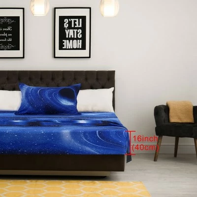 Fitted sheet can cover your entire bed and does not slip off easily.Your child will definitely love sleeping in mysterious galaxy.Our galaxy bed sheet set create a small interstellar world for your children.Children’s knowledge of cosmic astronomy can bring joy and arouse great interest to study other knowleage.Sheet & Pillowcase sets made of soft polyster,breathable and comfy,You will have a comfortable sleep without worrying about any damage to your skin.Our bedding with advanced reactive printing technology,it will not fade due to washing and long use.Bed sheets set with 16 inch Large pockets,include bed sheet and pillowcases.About Size: Twin Size:1 Twin size Flat Sheet 95″x65″/243*167cm, 1 Fitted Sheet 74″x39″/190*99cm,1 pillow sham 19″x29″/ 48*74cm.Nice tips: To protect the sheet, please turn the inside out when you wash the bedding set;Soaking time should not to be too long and tumble dry on low.