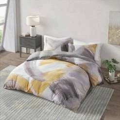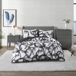 Bring a soft dreamy expression to your bedroom with the CosmoLiving Andie Cotton Printed Duvet Cover Set. The 100% cotton duvet cover and matching shams features a broad brushstroke print, creating a striking contemporary look. A solid reverse complements the top of the duvet to complete the abstract design. This bedding set is OEKO-TEX certified, meaning it does not contain any harmful substances or chemicals to ensure quality comfort and wellness. A button closure secures a padded insert within the duvet cover and inside corner ties prevent it from shifting (insert is NOT included).