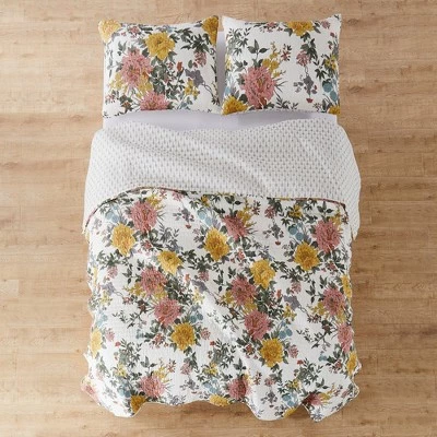 The Briar Reversible Twin Quilt Set by Levtex Home is inspired by the rich colors of a country garden in the fall. This colorful floral design will immediately transform your bedroom. Made with the softest lightweight cotton, this reversible quilt features red and yellow flowers with hints of green and blue on a white background, reversing to a a grey striped floral pattern on the other. The Twin Quilt Set is machine washable and includes the quilt (68x86in.) and one standard pillow sham (26x20in.) Enjoy this for years to come!