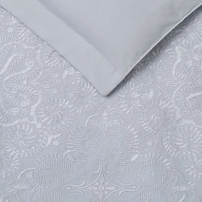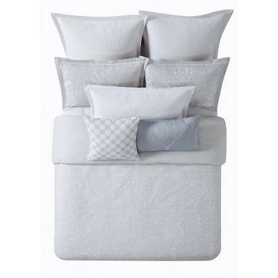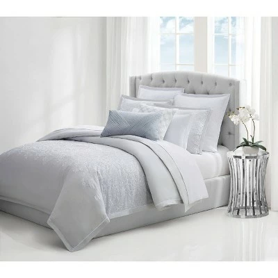 A wide border of tile motifs are embroidered on the bedding face in a soft silver thread on a light gray base fabric. The tonality of the soft gray ground, mixed with a white embroidery as an offset creating an ethereal feeling that is tranquil and elegant. 100% Cotton face and reverse fabric to ensure your skin is only touching 100% natural fibers. Charisma is known for quality and fine details so you can rest easy knowing you have a quality product. Face and reverse is a 100% cotton with 100% polyester fill. This item is machine washable; however, care should be taken to use appropriate sized machinery so as not to unduly wear the item.