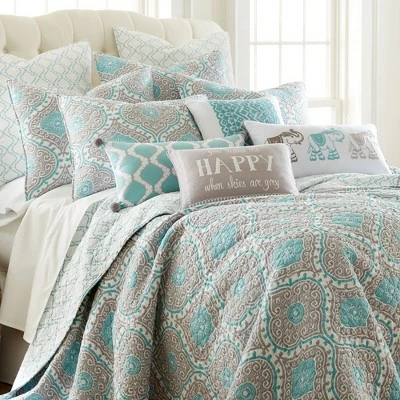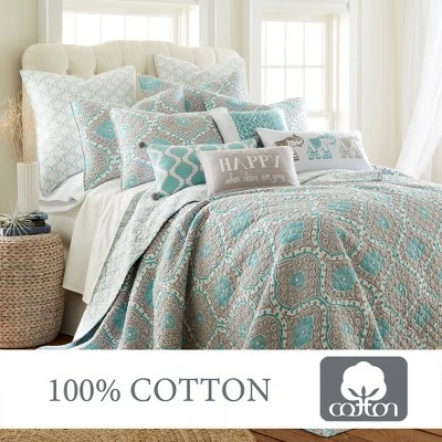 - COORDINATE YOUR ROOM DECOR: Create a wonderful bedroom space with our coordinated reversible matching bed set. The grey, teal and ivory design brings cool, traditional sophistication into your home and will match a variety of different looks and bedroom decor. You can also freshen your room with other items from the Levtex Home collection.