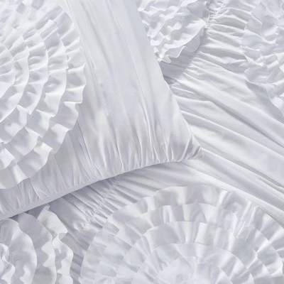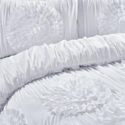 The Serena Comforter 3 Piece Set is sure to impress all your guests with the incredible amount of special details that are incorporated in the design. Made from heavily brushed poly, the ruching creates a textured base which is so soft yet creates a perfect backdrop for the hand crafted and engineered floral details. Each delicately handcrafted flower brings a whole new dimension to the bedroom. It has a calming effect, adding a touch of elegance with its intricate and complementary circular patterns. The Serena Comforter 3 Piece Set includes a soft and luxurious comforter and two matching pillow shams. The pillow shams even have the floral details! It is available in both King and Queen sizes and multiple color options. Due to the delicate nature of the floral embellishments, this Serena Comforter 3 Piece Set is not safe for machine washing and must be dry cleaned. Part of the Serena Collection. Oeko-Tex Certified.