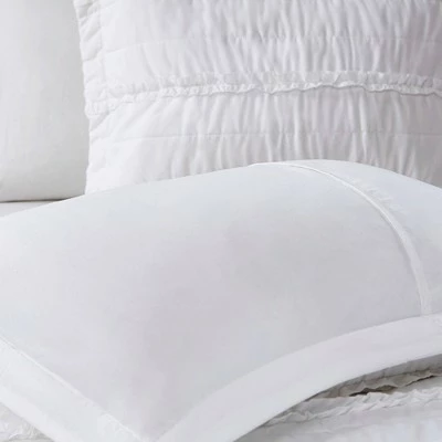Create a shabby chic look in your bedroom with the Alexis Ruffle Quilted Reversible 4pc Coverlet Set. This solid reversible white coverlet has ruffles and quilting paired with a contrasting embroidered decorative pillow for a clean update for your space. If youβre not satisfied with any Target Owned Brand item, return it within one year with a receipt for an exchange or a refund.