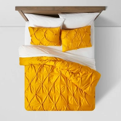 Add a subtle touch of textural dimension to enhance your bedroom decor with the Pinched Pleat Duvet Cover Set from Threshold. The pleated fabric has multiple pin tucks for ultimate softness and texture. Oeko-Tex. If you’re not satisfied with any Target Owned Brand item, return it within one year with a receipt for an exchange or a refund.