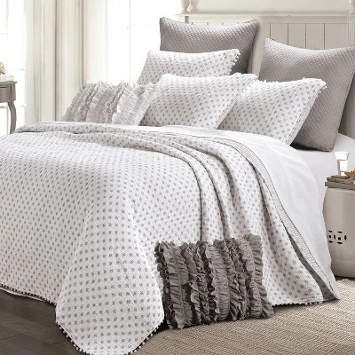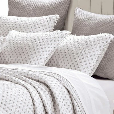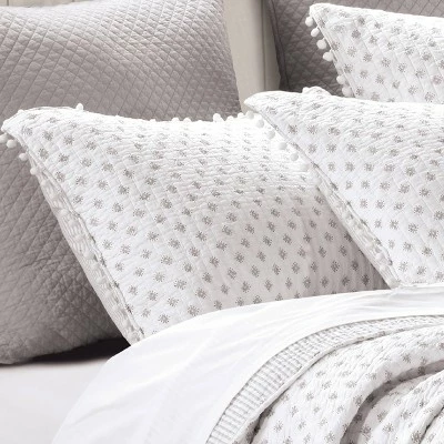 Bedeck any bedroom in your home in classic style with the Risa Quilt Set from The Industrial Shop. This decorative bedding collection includes a cotton quilt and coordinating cotton sham, each featuring a quilted design with dainty geometric prints and dotted accents, while pompom trim brings a touch of style to your space. Made from 100% cotton, this cotton quilt and sham set will provide you soft comfort as you recline and hit off the lights for a restful night.