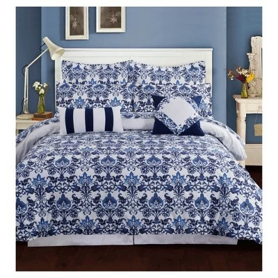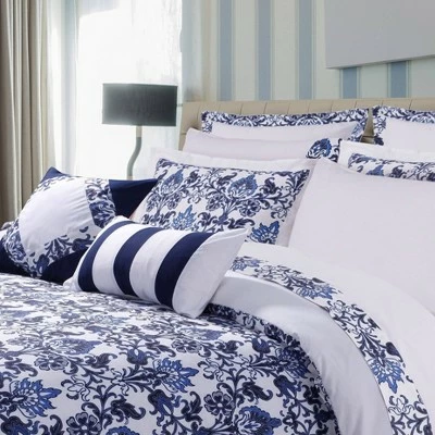 The 300tc long staple cotton percale 5-piece printed duvet cover set includes one oversized duvet cover, two shams, and two decorative pillow covers. Available in three unique prints, this duvet set will update the look of your bedroom. Queen Dimensions: Duvet Cover: 92 inches wide x 96 inches long, Shams: 20 inches wide x 26 inches long, Square Pillow Cover: 18 inches wide x 18 inches long, Oblong Pillow Cover: 12 inches wide x 22 inches long. King Dimensions: Duvet Cover: 110 inches wide x 96 inches long, Shams: 20 inches wide x 36 inches long, Square Pillow Cover: 18 inches wide x 18 inches long, Oblong Pillow Cover: 12 inches wide x 22 inches long.