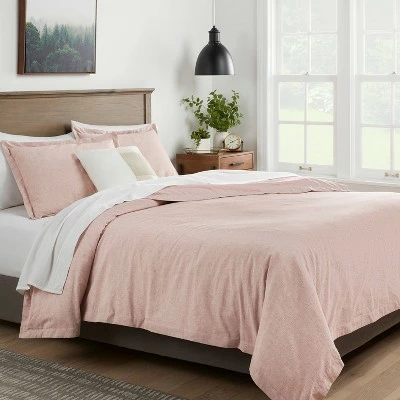 Update your bedroom decor with this Cotton Linen Chambray Duvet Cover & Sham Set from Threshold™. This decorative duvet set includes one duvet cover and one sham, both made from a soft fabric blend to let you stay cozy and comfy as you take a nap or sleep through the night. Featuring a chambray construction in a solid hue, this duvet and sham set easily blends in with your existing bedroom decor, while giving you a variety of options to decorate your bed. Simply toss in contrasting shams and sheets and add comfy pillows to transform your bed space into a soothing resting nook.