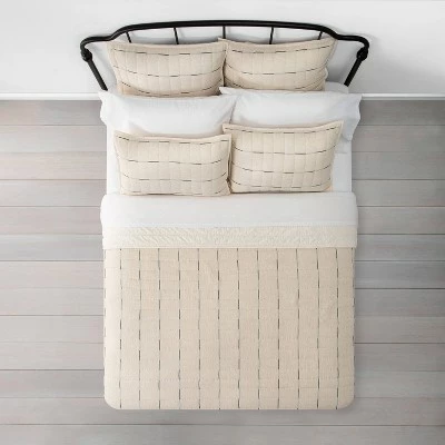 This Striped Bedding Collection from Hearth & Hand™ with Magnolia makes it easy for you to refresh a guest room or update the look of your master suite for an instant style and comfort upgrade. The simple and versatile designs included in this neutral bedding collection pair easily with nearly any decor style. Two different comforters with unique broken and open stripe designs provide the perfect top layer to any bed, while the white linen-blend sheet set and pillow cases are great for cozying up in after a long day. This comforter and sheet bedding collection lets you transform the look and feel of any bedroom — simply add your own decorative throw pillows and pillow shams to create a space that’s uniquely you.