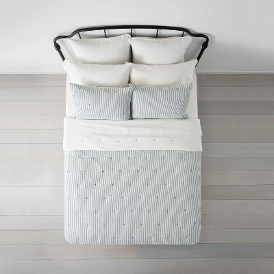Transform your bedroom into a serene, cozy and inviting place to rest with the X Comforter Collection from Hearth & Hand™ with Magnolia. Boasting an attractive seersucker design in navy and cream and highlighted with embroidered “X” design, this decorative bedding collection is both stylish and comfortable. The soft-filled comforter helps you stay warm whether you’re taking an afternoon nap or sleeping through the night, and the coordinating pillow shams offer a nice spot to rest your head against for added comfort.