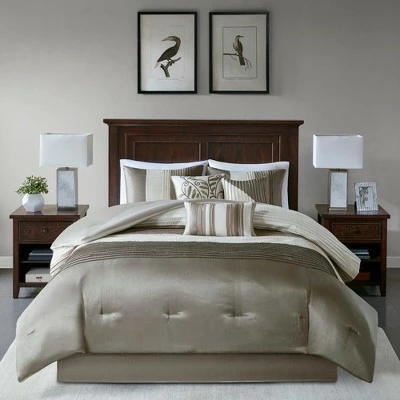 - Includes: 3 Decorative Pillows, 2 Standard Shams, Bed Skirt, Comforter