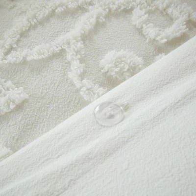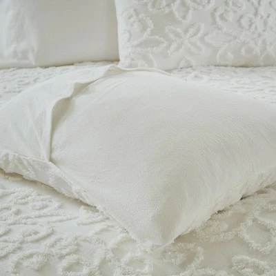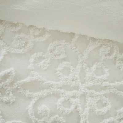 Soften the look of your bedroom with the Amber Tufted Cotton Chenille Duvet Cover Set. The cotton chenille duvet cover and shams flaunt a beautiful all-over floral medallion motif, for a charming farmhouse look. Made with a 100% cotton face and reverse, this cotton chenille duvet cover set offers a shabby chic update for your bedroom and is machine washable for easy care. Button closures help secure a comforter insert within the duvet cover and four inside ties in the corners help prevent it from shifting (insert is NOT included). Due to the nature of the chenille fabric, some shedding will occur naturally in the first 3-4 washes.