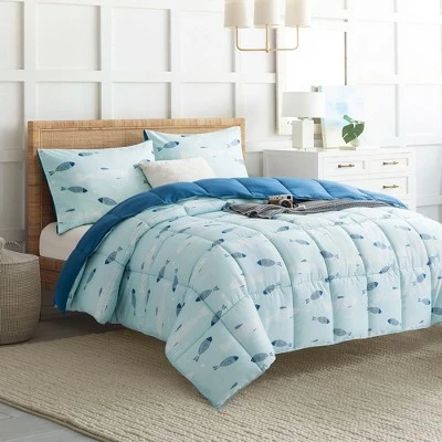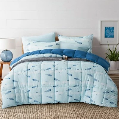 Kick back and relax in this cozy comforter set, with blue fish pattern. The soft down alternative fill ensures a lightweight loft that retains its shape, offering sweet sleep during nights and luxurious year-round comfort for you. Reversible color design is like two comforters in one to easily match your decor and mood. Double needle stitches ensure the durability of the comforter. This comforter is machine washable for easy clean.
