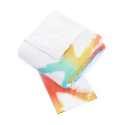Get ready for a far out explosion of color with the Tiedye Rainbow comforter from Ampersand! This fun printed version of the familiar hand dyeing technique would make for a lively addition to your room. Rainbow colors of blue, green, orange, yellow, pink, and lavender make up this geometric trellis of a pattern on white. Relax and stay groovy with the Tiedye Rainbow comforter. This cozy comforter is all cotton with polyester fill.