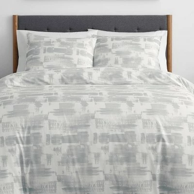 Style your bedroom as neutral territory with this modern brushstroke geometric in a minimal palette of silvery gray and white. Artistic and urbane, this bed set will provide a fresh update with a contemporary attitude for any room, whether in the city or the country. Twin duvet cover set includes one duvet cover (86″x68″) and one sham (21″x27″). Full/queen duvet cover set includes one duvet cover (88″x88″) and two shams (21″x27″). King duvet cover set includes one duvet cover (88″x104″) and two shams (21″x37″). Duvet features 4-inner corner ties, used to keep the duvet insert in place during use. Duvet insert sold separately. Machine washable for easy care.