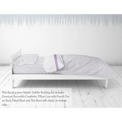 - Product Name: Bacati – Petals/Floral Lilac Girls Muslin 4 pc Toddler Bedding Set