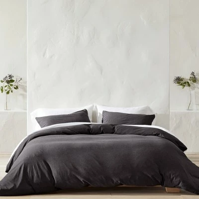 Settle down for the night in the cozy comfort of the Jersey Duvet & Sham Set from Casaluna™. This bedding set comes with an oversized duvet cover and two standard-sized shams, all made from a combo of cotton and lyocell that’s soft and lightweight to keep you feeling great throughout the night. An array of neutral hues and muted shades of green, pink and yellow give you plenty of options to choose from to create a relaxing aesthetic you’ll love. Simply add a Casaluna duvet insert to pull it all together.