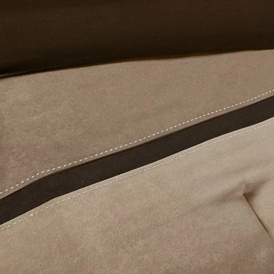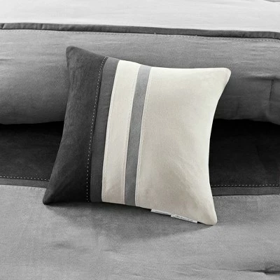 The Overland 7 Piece Faux Suede Comforter Set offers you a casual alternative in fashion bedding. The soft microsuede, in coordinating colors, is pieced together with a solid reverse to create this beautiful comforter set. The decorative pillows are embroidered and pieced to add a decorative element to this simple, yet beautiful bedding collection. With hypoallergenic filling in the comforter and pillows, this stylish comforter set easily refreshes your bedroom decor and is machine washable for easy care.