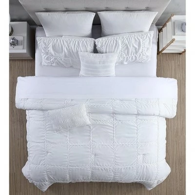 Indulge yourself in spa-like luxury with this 7-Piece Embellished Comforter Set. The polyester filling gives just the right fluffiness to this comforter set while the bar tacking details give a more formal finished look. Our luxuriously silky brushed microfiber material is constructed using techniques that include better stitching, stronger weaving, and softer materials; Ensuring a durable and soft touch. Fashion meets luxury with this set and is the perfect solution to your decorative and comfort needs.
