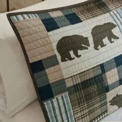 Turn your guest bedroom into an inviting and cozy space with the Woolrich Winter Plains 5 Piece Daybed Cover Set. This quilted daybed cover features a mix of solid and plaid prints with a solid reverse to create a classic lodge look. The 3 reversible shams repeat the design seen on the daybed and feature tie closures on the sides that add a charming accent. A solid bedskirt adds the finishing touch to this cabin style daybed set. Machine washable for easy care, this daybed cover set easily fits a Twin size mattress.