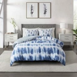Best Pirce 👍 3pc Tie Dye Cotton Printed Duvet Set – CosmoLiving by Cosmopolitan Blue 🔔