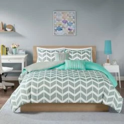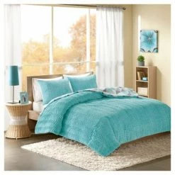 New π Intelligent Design Haley Reversible Comforter Mini Set Aqua π