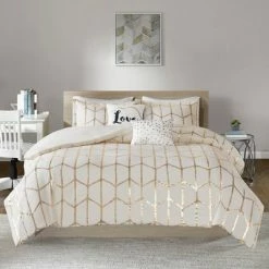 Outlet π― Intelligent Design Kendra Metallic Printed Duvet Cover Set Ivory/Gold π