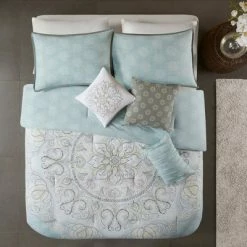 Coupon 🌟 Madison Park Adela 7 Piece Cotton Printed Comforter Set Indigo 👍