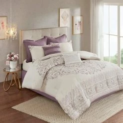 Flash Sale β Madison Park 8pc Kaia Cotton Printed Reversible Comforter Set Ivory/Purple π