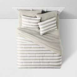 Brand new 🎉 Light Gray Stripe Print Comforter Set with Gray Sheets – Room Essentials™ ❤️